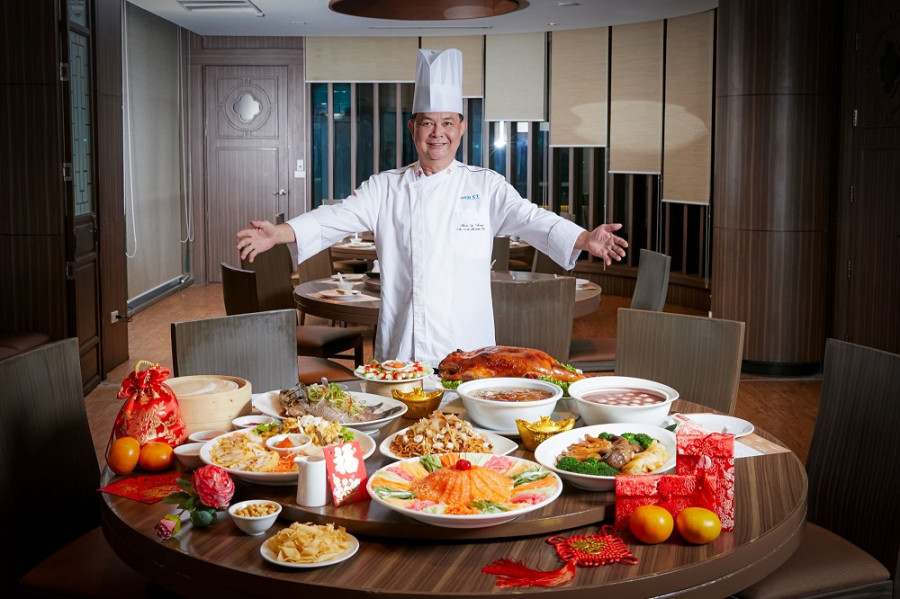 สำหรับโต๊ะจีนเซตตรุษจีนสำหรับ 10 ท่าน มีให้เลือก 2 ชุด เริ่มที่ Set A: ชุดมงคลแห่งโชคลาภ ราคา 13,888++ บาท ประกอบด้วย 8 เมนู ได้แก่ “สลัดปลาแซลมอนสายรุ้ง” ปลาแซลมอนเนื้อแน่นและผักหลากสี เสิร์ฟพร้อมถั่ว งา และซอสสูตรเฉพาะ ก่อนรับประทานให้คลุกเคล้าทุกทุกอย่างให้เข้ากัน พร้อมยกตะเกียบให้สูงและกล่าวคำว่า “โหล่วเห” ซึ่งเป็นภาษากวางตุ้ง แปลว่าร่ำรวย มีโชคลาภ “กระเพาะปลาผัดแห้งเนื้อปู/เปาะเปี๊ยะกุ้งทับทิม/ไก่แช่เหล้า” ออเดิร์ฟคุณภาพที่ครบครันความอร่อย มีทั้งกระเพาะปลาและกุ้งที่เปรียบเสมือนความร่ำรวย และไก่เปรียบดั่งชีวิตที่สูงขึ้น “ซุปเป๋าฮื้อเส้นไก่เส้นเห็ดหอมเส้นน้ำแดง” ซุปที่มีความหมายถึงความเหลือกินเหลือใช้ “เป็ดปักกิ่งย่างไม้ลำไย” ซึ่งเป็นสัญลักษณ์ของความอุดมสมบูรณ์ เชฟใช้เป็ดตัวใหญ่นำไปย่างจนหนังกรอบ และหอมกลิ่นไม้ลำไย “กระเพาะปลาสดขาห่านเห็ดหอมน้ำแดง” ที่สื่อถึงความร่ำรวยมั่งคั่ง “ปลาเก๋าดำนึ่งซีอิ๊ว” คัดปลาสดเป็นๆ นำมานึ่งซีอิ๊วสไตล์ฮ่องกง ซึ่งปลาเปรียบดั่งความสมบูรณ์ และ “บะหมี่อีฟูเนื้อปู” บะหมี่อีฟูเส้นแบน พร้อมเนื้อปูอัดแน่น ผัดหอมกลิ่นกระทะ โดยเชื่อว่ารับประทานแล้วชีวิตจะยืนยาว ปิดท้ายด้วยของหวาน “บัวลอยสาคูถั่วแดงบดร้อน” เปรียบเสมือนความอบอุ่นในครอบครัว ในเซตเสิร์ฟพร้อมเครื่องดื่ม โดยสามารถเลือกเป็นชาจีน หรือน้ำเก๊กฮวย (ร้อน/เย็น)