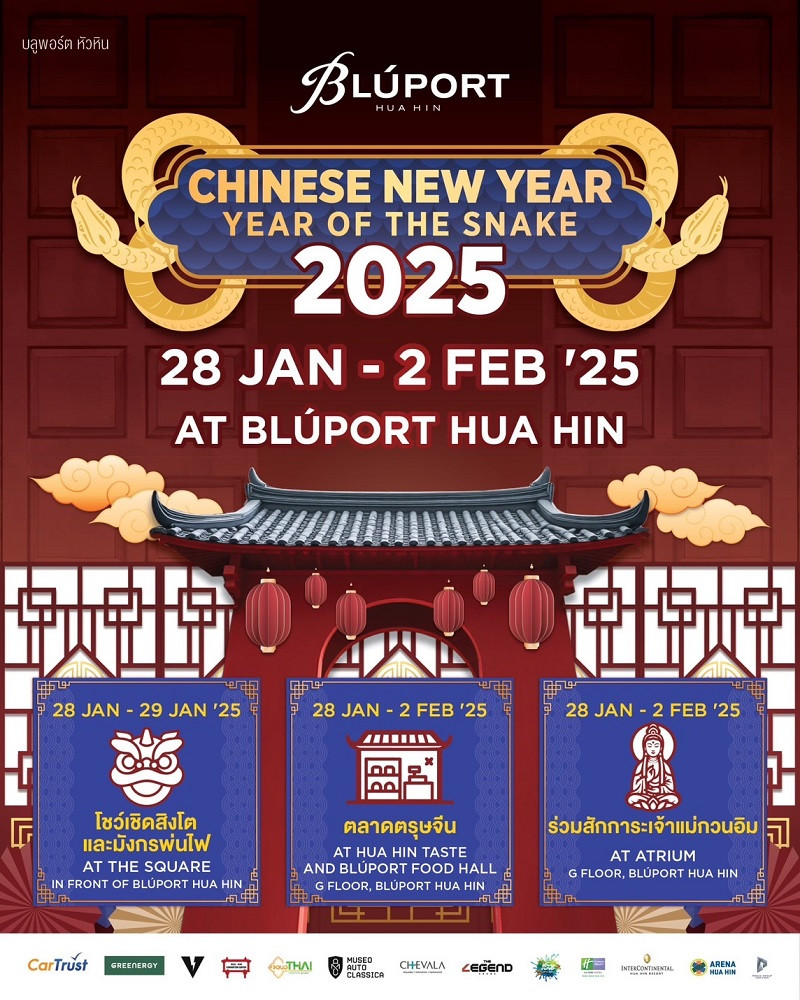 ฉลองเทศกาลตรุษจีน เสริมสิริมงคล ความมั่งคั่ง รับความปังตลอดปี พร้อมกิจกรรมสนุก ๆ กับงาน CHINESE NEW YEAR..YEAR OF THE SNAKE 2025 วันที่ 28 มกราคม – 2 กุมภาพันธ์ 2568 ณ บลูพอร์ต หัวหิน สอบถามข้อมูลเพิ่มเติมได้ที่ โทร.032-905-111 หรือติดตามข่าวสารและกิจกรรมได้ทาง Facebook: BluportHuaHinOfficial, Line official : @bluport