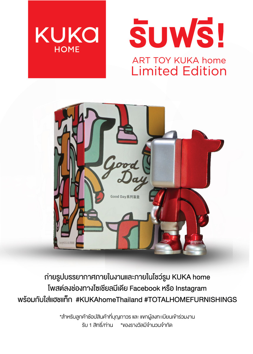 ให้ทุกโมเมนต์ในงานกลายเป็นความทรงจำที่น่าประทับใจ! เพียงถ่ายภาพ บรรยากาศภายในงาน 1 ภาพ และภายในโชว์รูม KUKA home 1-2 ภาพ แล้วโพสต์ลง Facebook หรือ Instagram – kukahomethailand พร้อมติดแฮชแท็ก #KUKAhomeThailand #TOTALHOMEFURNISHINGS เพื่อรับของรางวัลสุดพิเศษจากเราไปเลย! 🎁 (*อย่าลืมแสดงบัตรเชิญที่หน้างานเพื่อรับสิทธิ์*)