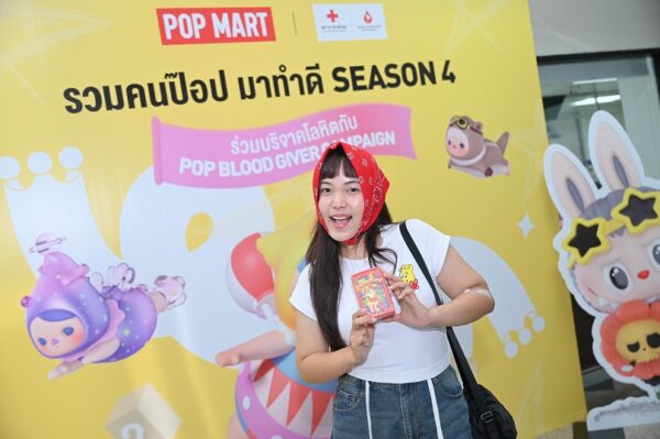 POP MART THAILAND ภายใต้การบริหารจัดการโดย POP MART INTERNATIONAL ผู้ผลิตและจัดจำหน่ายอาร์ตทอยส์รายใหญ่ระดับโลก นำโดย คุณศิริพร แผลงจันทึก Country General Manager บริษัท ป๊อป มาร์ท (ประเทศไทย) สานต่อโครงการ ‘POP BLOOD GIVER CAMPAIGN SEASON 4’ ขึ้นอีกครั้ง โดยร่วมกับ สภากาชาดไทย รณรงค์ส่งเสริมให้ชาวป๊อปทั่วประเทศเข้าร่วมบริจาคโลหิตเพื่อช่วยชีวิตเพื่อนมนุษย์ ซึ่งถือเป็นอีกหนึ่งโครงการเพื่อสังคม (CSR) จากภาคเอกชน ที่ได้รับการตอบรับจากผู้คนและประสบผลสำเร็จเป็นอย่างดี