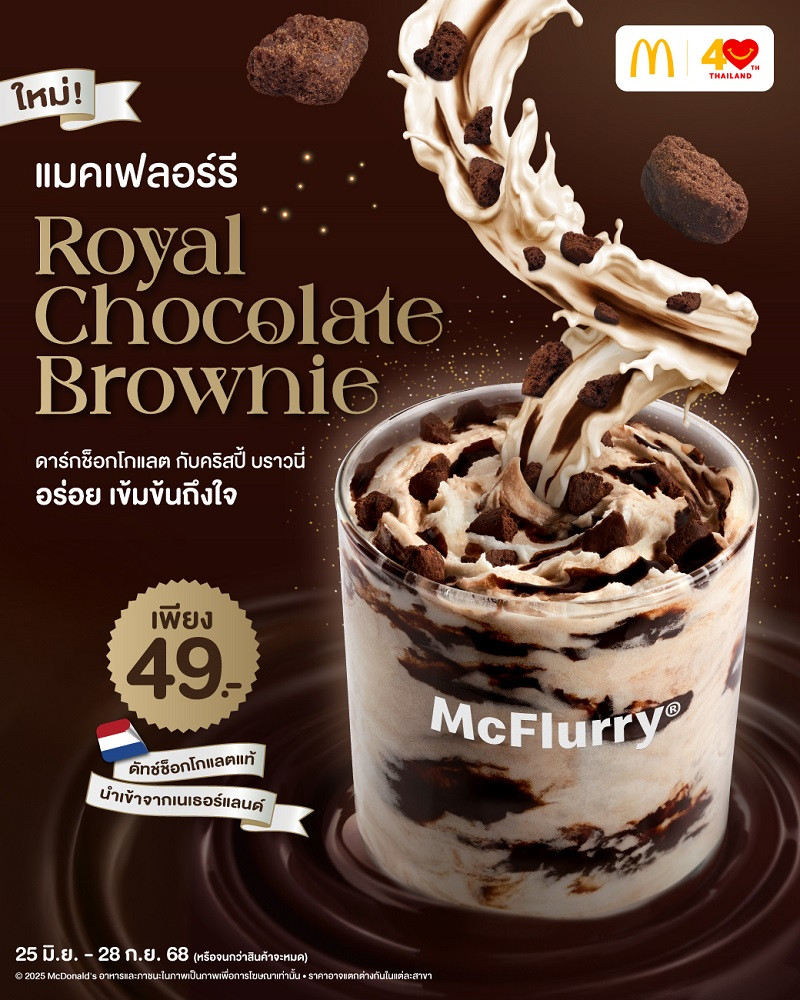 แมคโดนัลด์ เปิดประสบการณ์ความอร่อย! ใหม่! ‘แมคเฟลอร์รี รอยัล ช็อกโกแลต บราวนี่’ ดัทช์ช็อกโกแลตแท้ เข้มข้นถึงใจ และ ‘ชีสซี่แฮมพาย’ พายสุดฮิตที่ทุกคนคิดถึง