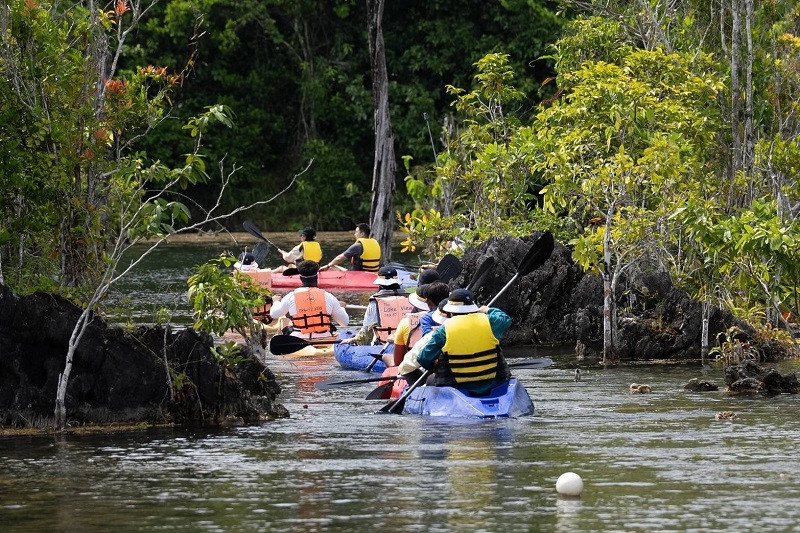 ด้านสินค้าและธุรกิจท่องเที่ยว ร่วมกับฝ่ายตลาดต่างประเทศทั้งระยะไกลและระยะใกล้ นำคณะ Influencer, Journalist และ Travel Agent จากยุโรป อเมริกา จีน และอินเดีย รวมทั้งผู้แทนจาก กองตลาดอเมริกา และ กองตลาดเอเชีย ร่วมเดินทางสู่เส้นทาง Active Holidays ผ่านกิจกรรม Soft Adventure อาทิ พายคายัค ปั่นจักรยาน Hiking และ Trekking เดินศึกษาธรรมชาติ ตามรอยสถานที่ถ่ายทำภาพยนตร์ฟอร์มยักษ์ Jurassic World: Rebirth ในช่วง Green Season เพื่อให้ผู้ร่วมทริปได้สัมผัสเสน่ห์ของธรรมชาติ และความอุดมสมบูรณ์แหล่งท่องเที่ยวต่าง ๆ ผ่านกิจกรรม เช่น การพายคายัค “คลองน้ำใส” ซึ่งเป็นฉากสำคัญในภาพยนตร์ พายคายัคสัมผัสบรรยากาศราวกับหลุดเข้าไปในโลกดึกดำบรรพ์