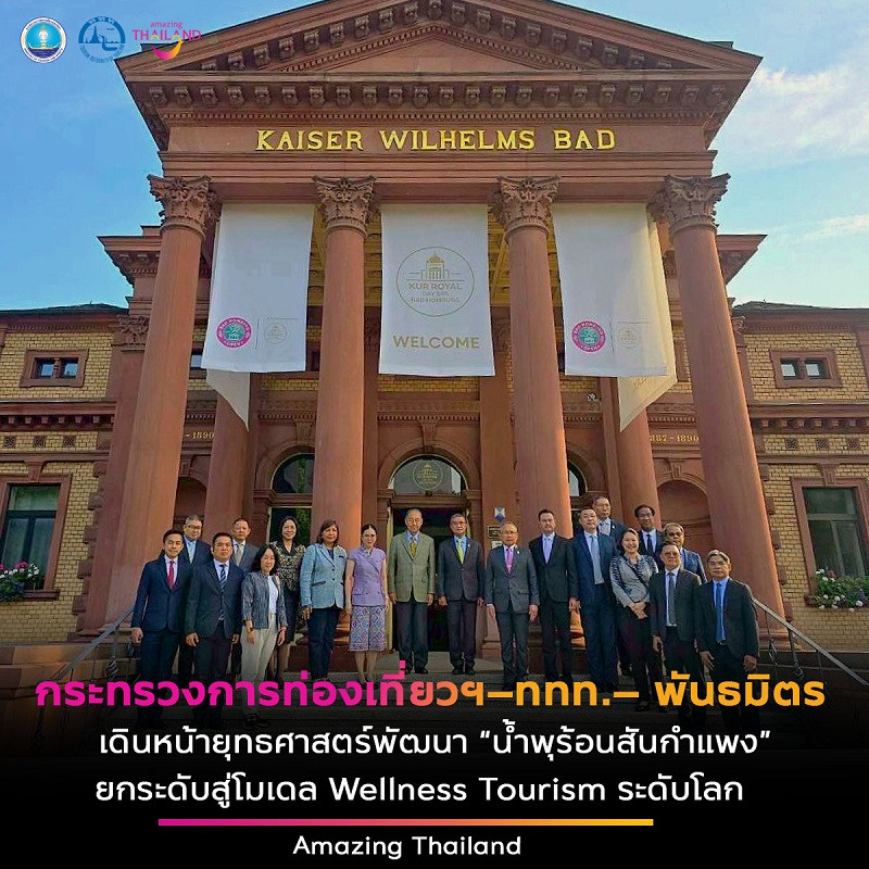 คณะผู้แทนจากประไทย นำโดย พณฯ องคมนตรี พลอากาศเอกชลิต พุกผาสุข ประธานที่ปรึกษา คณะอนุกรรมการบริหารจัดการกิจการน้ำพุร้อนสันกำแพง อำเภอแม่ออน ให้เป็นต้นแบบอย่างยั่งยืน พร้อมด้วยพลเอกเฉลิมชัย สิทธิสาท ประธานคณะอนุกรรมการฯ นางสาวฐาปนีย์ เกียรติไพบูลย์ ผู้ว่าการการท่องเที่ยวแห่งประเทศไทย (ททท.) นายจาตุรนต์ ภักดีวานิช อธิบดีกรมการท่องเที่ยว และนายกันตพงศ์ รังษีสว่าง อธิบดีกรมพัฒนาสังคมและสวัสดิการ และหน่วยงานที่เกี่ยวข้อง ได้เดินทางเข้าร่วมประชุม และศึกษาการบริหารจัดการน้ำพุร้อนและสปา ณ ประเทศเยอรมนี ซึ่งถือเป็นหนึ่งในประเทศที่มีชื่อเสียงระดับโลกด้าน “การบริหารจัดการน้ำพุร้อน (hot springs)” และสปา ที่มีคุณภาพสูง มีแนวปฏิบัติที่โดดเด่น อาทิ การจัดการคุณภาพน้ำด้วยเทคโนโลยีทันสมัย ความหลากหลายเชิงสุขภาพและการรักษา รวมถึงมีประวัติและคุณค่าทางวัฒนธรรมอย่างยาวนาน
