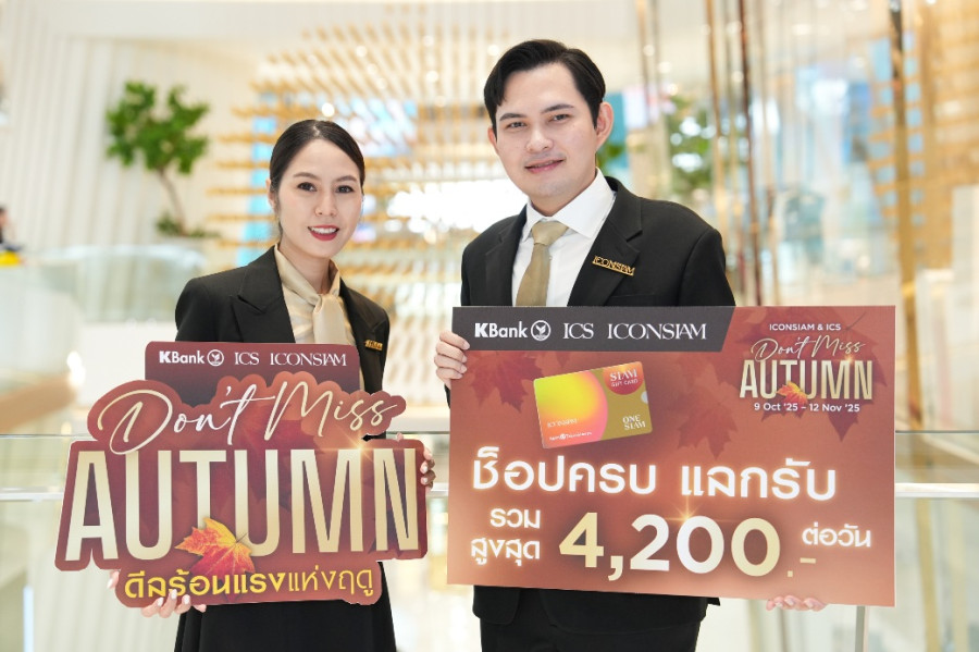 ไอคอนสยาม และไอซีเอส ตอกย้ำความเป็นจุดหมายปลายทางของนักท่องเที่ยวทั่วโลก ต้อนรับโค้งสุดท้ายปลายปีด้วยโปรโมชันในแคมเปญ “Don’t Miss Autumn!” เอาใจสายช้อปด้วยดีลร้อนแรงที่สุดแห่งฤดูกาล มอบสิทธิพิเศษให้สมาชิก ONESIAM ที่ใช้จ่ายผ่านบัตรเครดิตกสิกรไทย ครบตามยอดที่กำหนด รับทันทีของรางวัลสุดเอ็กซ์คลูซีฟ พร้อม Siam Gift Card มูลค่าสูงสุด 3,000 บาท รวมกว่า 3,600 รางวัล ตั้งแต่ 9 ตุลาคม – 12 พฤศจิกายนนี้เท่านั้น