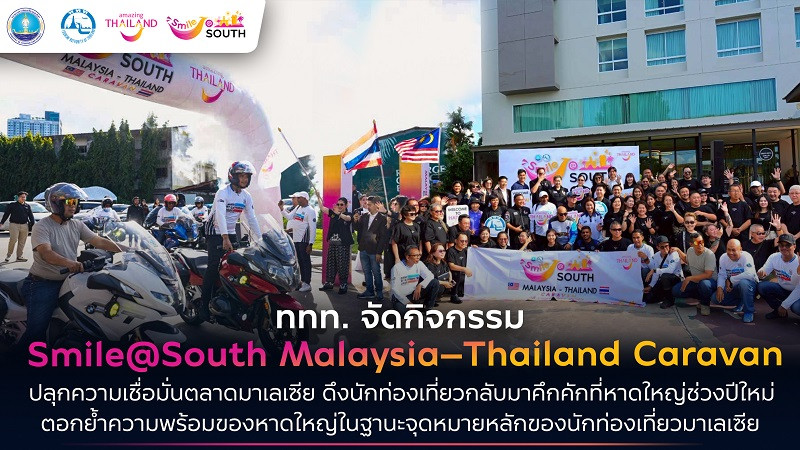 วันที่ 24 ธันวาคม 2568 ททท. จัดพิธีปล่อยขบวนคาราวานรถยนต์ Smile @ South, Malaysia-Thailand Caravan โดยมี นางสาวฐาปนีย์ เกียรติไพบูลย์ ผู้ว่าการการท่องเที่ยวแห่งประเทศไทย (ททท.) และนายชัย อรุณานนท์ชัย นายจีระยุ จารุกิตติวรกานต์ คณะกรรมการ ททท. คณะผู้บริหาร ททท. พร้อมด้วย นายวรัชญ์ ปริสุทธิ์กุล รองประธานหอการค้าจังหวัดสงขลา และสมาคมพันธมิตรจังหวัดสงขลา สื่อมวลชนไทย และต่างประเทศ เข้าร่วมต้อนรับ และร่วมพิธีปล่อยตัวคณะคาราวานรถยนต์ 30 คัน Big Bike 22 คัน จากประเทศมาเลเซีย จำนวนนักท่องเที่ยวมาเลเซียกลุ่มศักยภาพและครอบครัว กว่า 100 คน ณ โรงแรมบุรีศรีภู อำเภอหาดใหญ่ จังหวัดสงขลา โดยคณะคาราวานมีกำหนดเดินทางท่องเที่ยวแหล่งท่องเที่ยวสำคัญในจังหวัดสงขลาและต่อไปยังจังหวัดสตูล