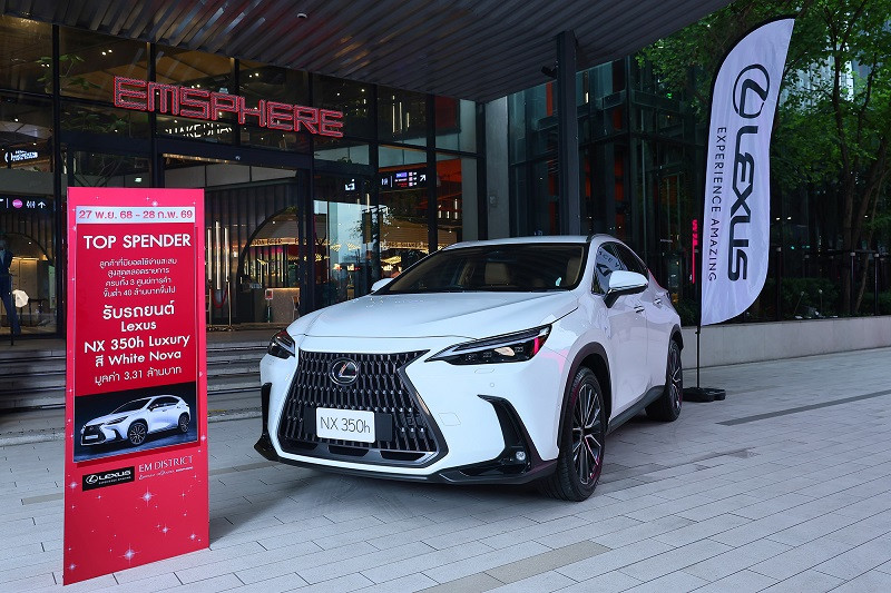 นางสุธาวดี ศิริธนชัย กรรมการผู้จัดการสายงานการตลาด เอ็ม ดิสทริค จับมือนายณัทธร ศรีนิเวศน์ ผู้ช่วยกรรมการผู้จัดการใหญ่ เลกซัส กรุ๊ป บริษัท โตโยต้า มอเตอร์ ประเทศไทย จำกัด ร่วมจัดแคมเปญใหญ่ EM DISTRICT Top Spender ตั้งแต่วันนี้ ถึงวันที่ 28 กุมภาพันธ์ 2569 ที่ศูนย์การค้าเอ็มโพเรียม เอ็มควอเทียร์ และเอ็มสเฟียร์ สร้างความคึกคักตลาดต้อนรับปี 2569 ที่ลูกค้ามีความตื่นตัวในการจับจ่ายอย่างต่อเนื่อง โดยลูกค้าที่มียอดใช้จ่ายสะสม ตลอดทั้งแคมเปญ ขั้นต่ำ 40 ล้านบาทขึ้นไป ตามเงื่อนไขที่กำหนด รับรางวัลพิเศษ รถยนต์ LEXUS NX 350h Luxury สี White Nova มูลค่า 3.31 ล้านบาท โดย Lexus NX 350h เป็นรถครอสโอเวอร์ระบบไฮบริดรุ่นยอดนิยมของเลกซัส ขับเคลื่อนด้วยเครื่องยนต์เบนซินขนาด 2.5 ลิตร 4 สูบ ผสานกับมอเตอร์ไฟฟ้า ให้กำลังรวมสูงสุด 240 แรงม้า เน้นความหรูหรา ประหยัดน้ำมัน และเทคโนโลยีล้ำสมัย สำหรับคนรุ่นใหม่ที่รักการขับขี่ในระดับพรีเมี่ยม