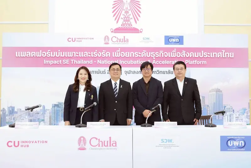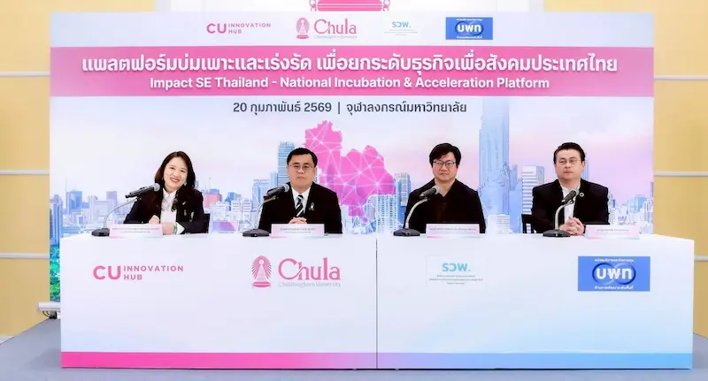 จุฬาลงกรณ์มหาวิทยาลัย ร่วมกับ หน่วยบริหารจัดการทุนด้านการพัฒนาพื้นที่ (บพท.) จัดพิธีแถลงข่าวการจัดตั้ง “แพลตฟอร์มบ่มเพาะและเร่งรัดเพื่อยกระดับธุรกิจเพื่อสังคมไทย (Impact SE Thailand – National Incubation & Acceleration Platform)” อย่างเป็นทางการ ในวันที่ 20 กุมภาพันธ์ 2569 ณ เรือนจุฬานฤมิต จุฬาลงกรณ์มหาวิทยาลัย โดยมีศาสตราจารย์ ดร.วิเลิศ ภูริวัชร อธิการบดีจุฬาลงกรณ์มหาวิทยาลัย เป็นประธานในพิธี พร้อมด้วยศาสตราจารย์ เภสัชกรหญิง ดร.พรอนงค์ อร่ามวิทย์ รองอธิการบดีจุฬาลงกรณ์มหาวิทยาลัย และ รองศาสตราจารย์ ดร.ปุ่น เที่ยงบูรณธรรม รองผู้อำนวยการ ฝ่ายแผนและยุทธศาสตร์องค์กร หน่วยบริหารจัดการทุนด้านการพัฒนาพื้นที่ สำนักงานเร่งรัดการวิจัยและนวัตกรรมเพื่อเพิ่มความสามารถการแข่งขันและการพัฒนาพื้นที่ (องค์การมหาชน) ตลอดจนผู้แทนหน่วยงานภาครัฐ ภาคเอกชน เครือข่ายนักลงทุน ผู้ประกอบการเพื่อสังคม นักวิจัย และภาคประชาสังคมเข้าร่วมงานอย่างคับคั่ง