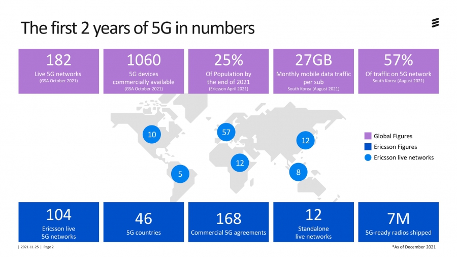 จากการคาดการณ์ที่ระบุว่ายอดผู้ใช้บริการ 5G จะสูงแตะ 660 ล้านบัญชีภายในสิ้นปีนี้เป็นการตอกย้ำสมมติฐานที่ว่า 5G เป็นเจนเนอเรชั่นเครือข่ายไร้สายที่มีการนำมาใช้งานรวดเร็วที่สุด โดยตัวเลขที่เพิ่มขึ้นนี้เป็นผลมาจากความต้องการใช้งานที่เพิ่มขึ้นในประเทศจีนและอเมริกาเหนือ ซึ่งเป็นผลมาจากราคาอุปกรณ์ 5G ที่ลดลง อีริคสันยังพบว่าในไตรมาส 3 ที่ผ่านมานี้ทั่วโลกมียอดผู้ใช้ 5G มีจำนวนเพิ่มขึ้นสุทธิที่ 98 ล้านบัญชี เทียบกับผู้สมัครใช้ 4G รายใหม่ที่ 48 ล้านบัญชี และคาดว่าเครือข่าย 5G จะครอบคลุมผู้ใช้งานกว่า 2 พันล้านคนภายในสิ้นปี 2564