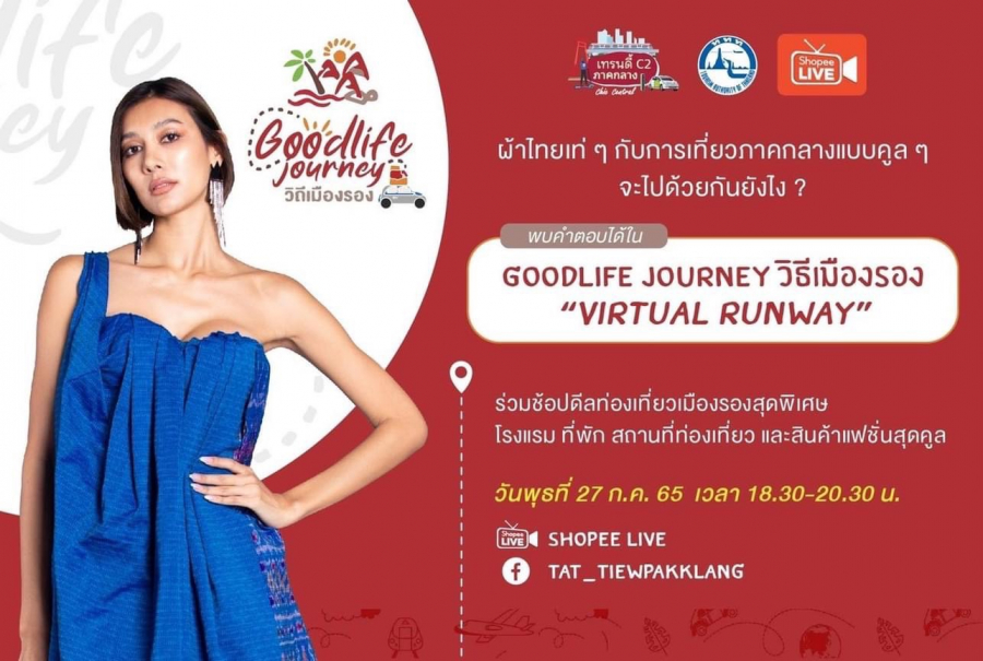 กับกิจกรรม ‘GOODLIFE JOURNEY วิถีเมืองรอง’ VIRTUAL RUNWAY นำเสนอผ้าไทยจากเมืองรองภาคกลางที่นำไปสู่การเดินทางท่องเที่ยวไปสัมผัสประสบการณ์ที่น่าประทับใจ ในเส้นทางราชบุรี-สมุทรสงคราม , สุพรรณบุรี-อ่างทอง และ ลพบุรี-สิงห์บุรี-อ่างทอง พร้อมกิจกรรม Online Event Marketing เสนอดีลพิเศษสินค้าแฟชั่น , ชุดจากผ้าไทย , กระเป๋า ,เครื่องประดับ และบริการทางการท่องเที่ยว ที่พัก ร้านอาหาร แหล่งท่องเที่ยว ฯลฯ