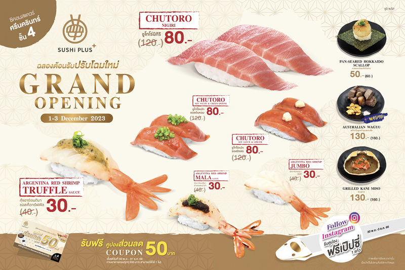 เตรียมพบกับ SUSHi PLUS โฉมใหม่ สาขาแรกในประเทศไทย !! พร้อมโปรโมชั่นพิเศษ เฉพาะช่วงเปิดร้าน